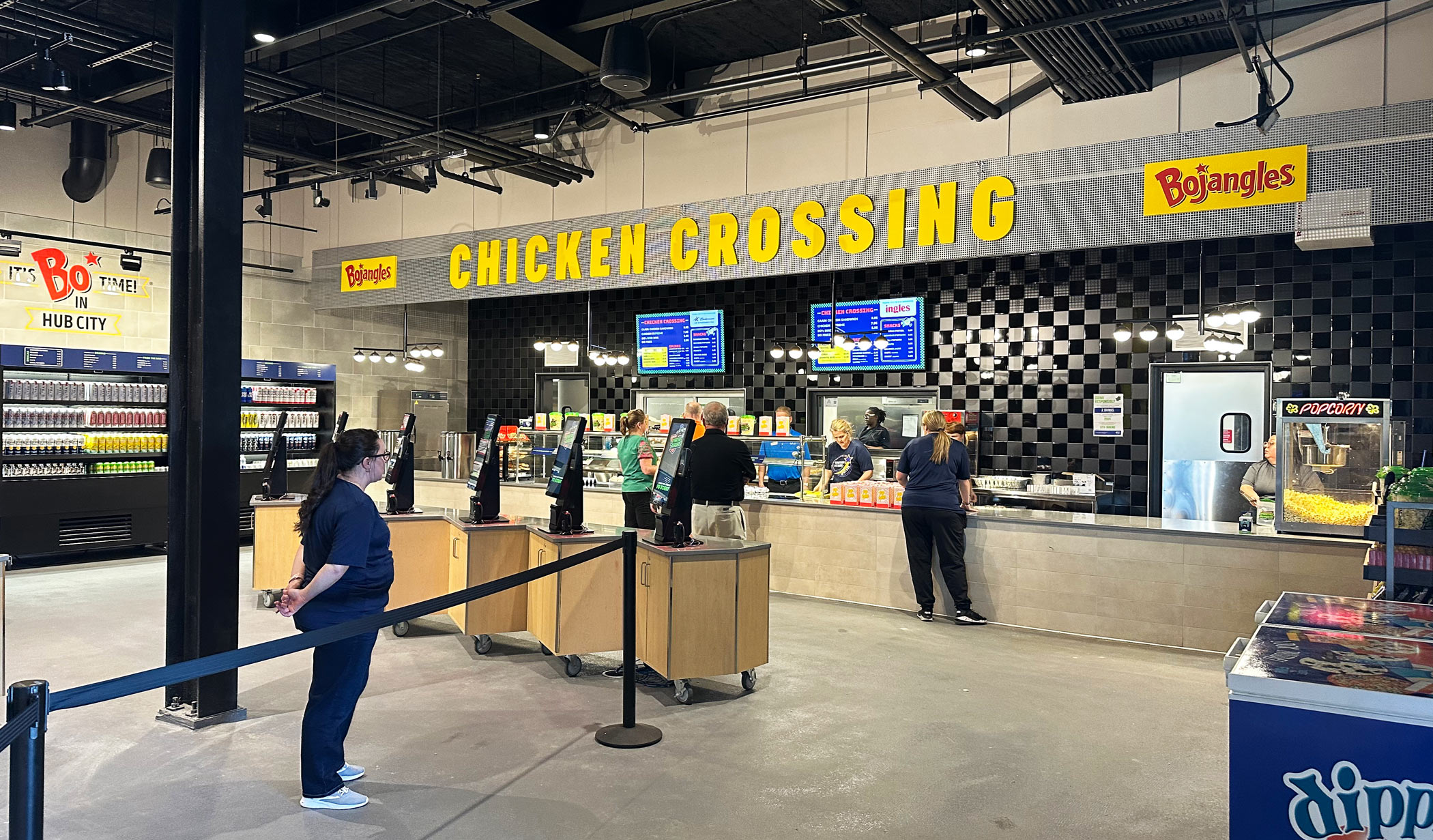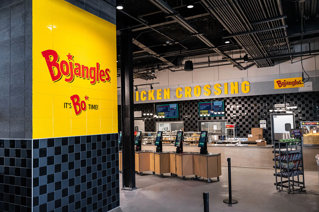 YDI designed distinct brands for the concessions at Fifth Third Park, continuing the trend of railroad influence. From “Firebox Corner” to “Cabooze,” these brands and their signage offer playful takes on the trains that gave Spartanburg its “Hub City” nickname. For “Chicken Crossing,” YDI incorporated the stand’s sponsor, Bojangles, into signage and graphics.