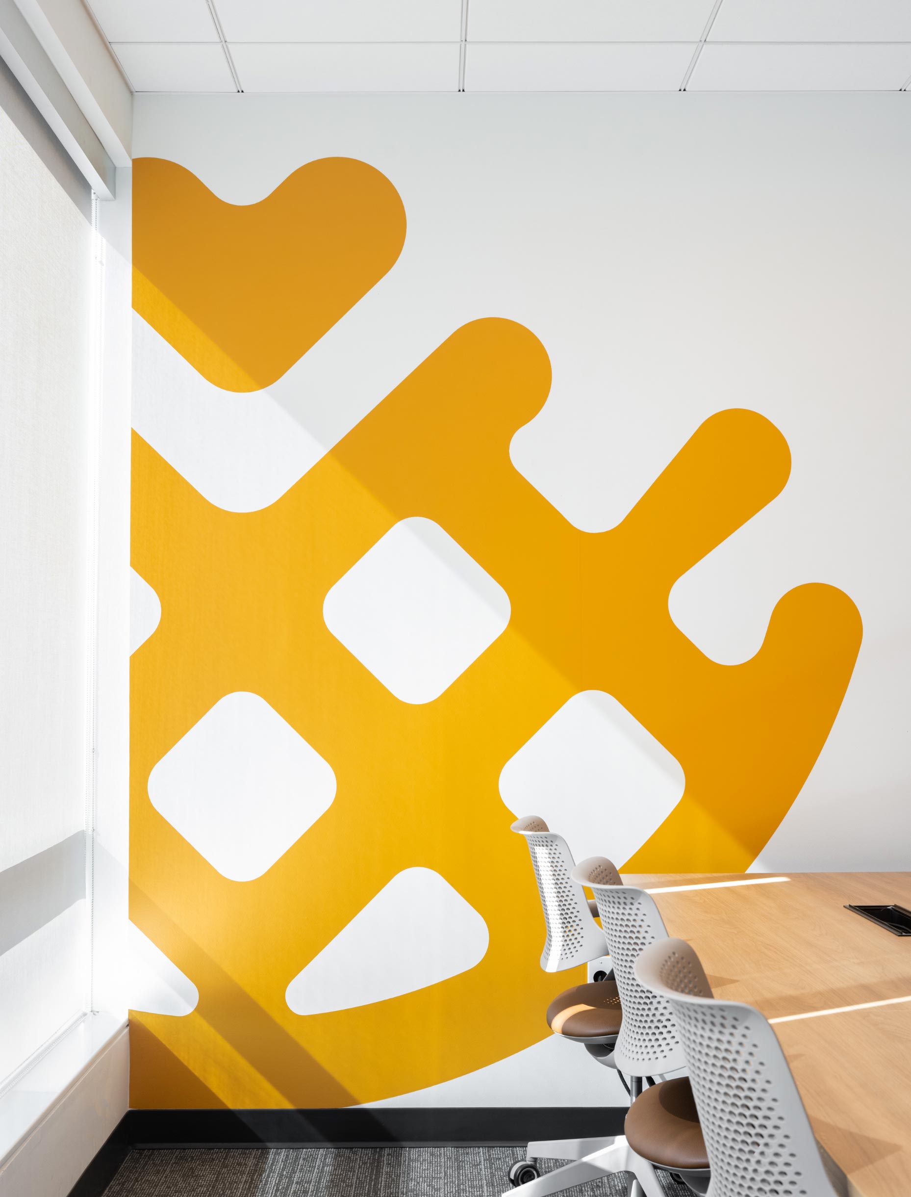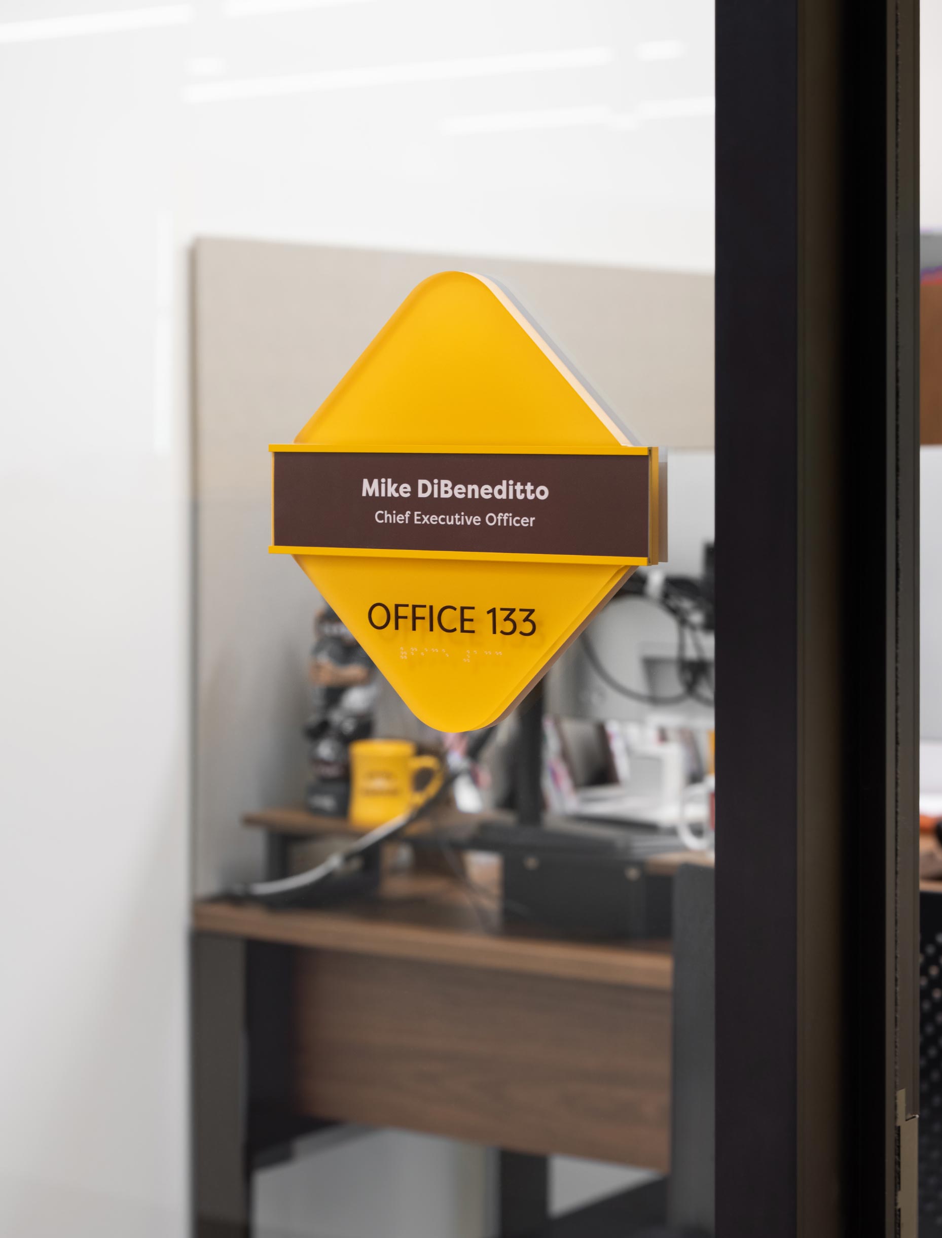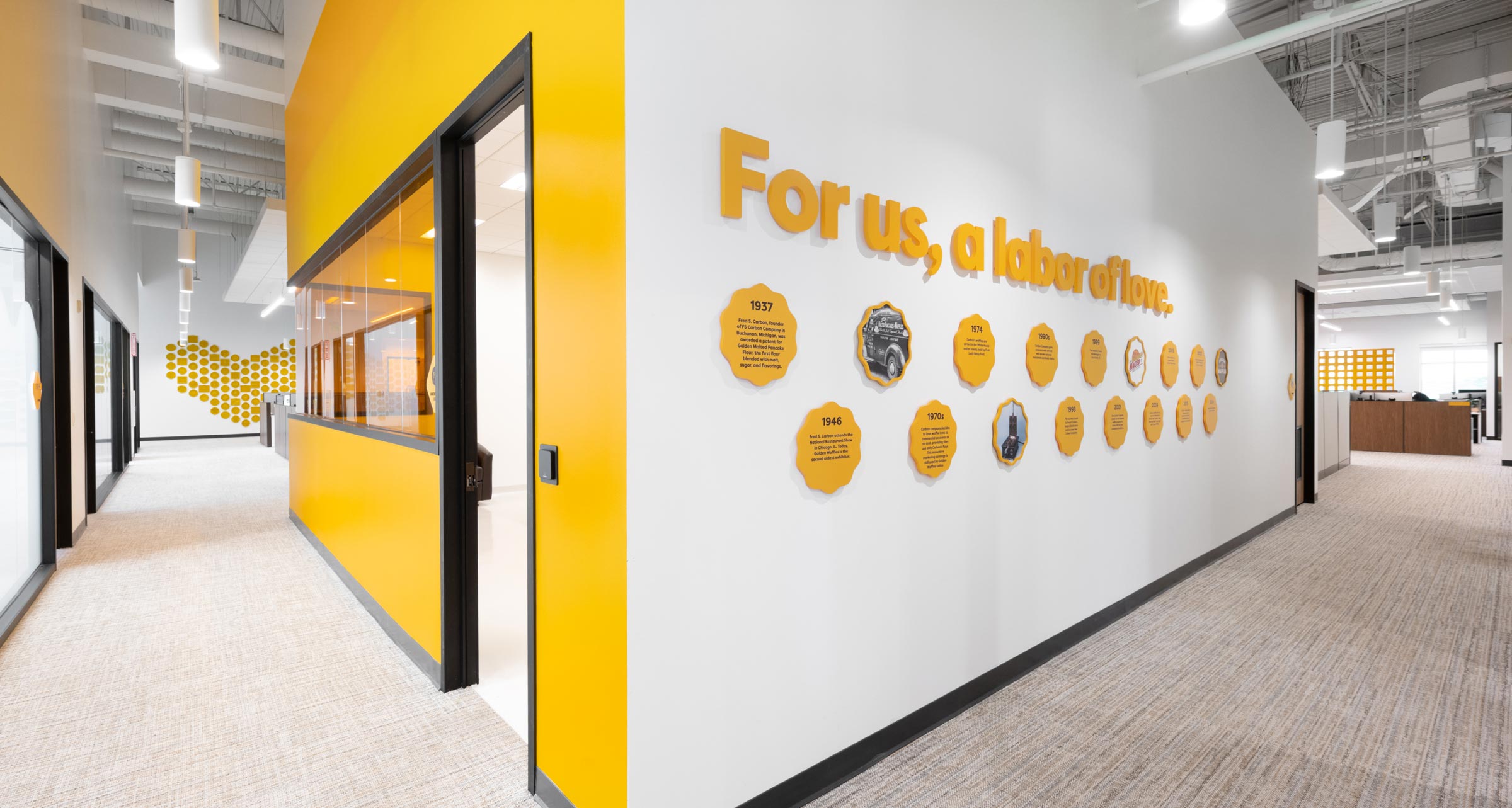 This project gave YDI several fun opportunities to enliven Golden Waffles’ headquarters with bright graphics and signage that reinforce their brand and celebrate their history. From illuminated identity signage to walls depicting company history and values, to ADA signage, YDI infused the Golden Waffles brand into every corner of the space.