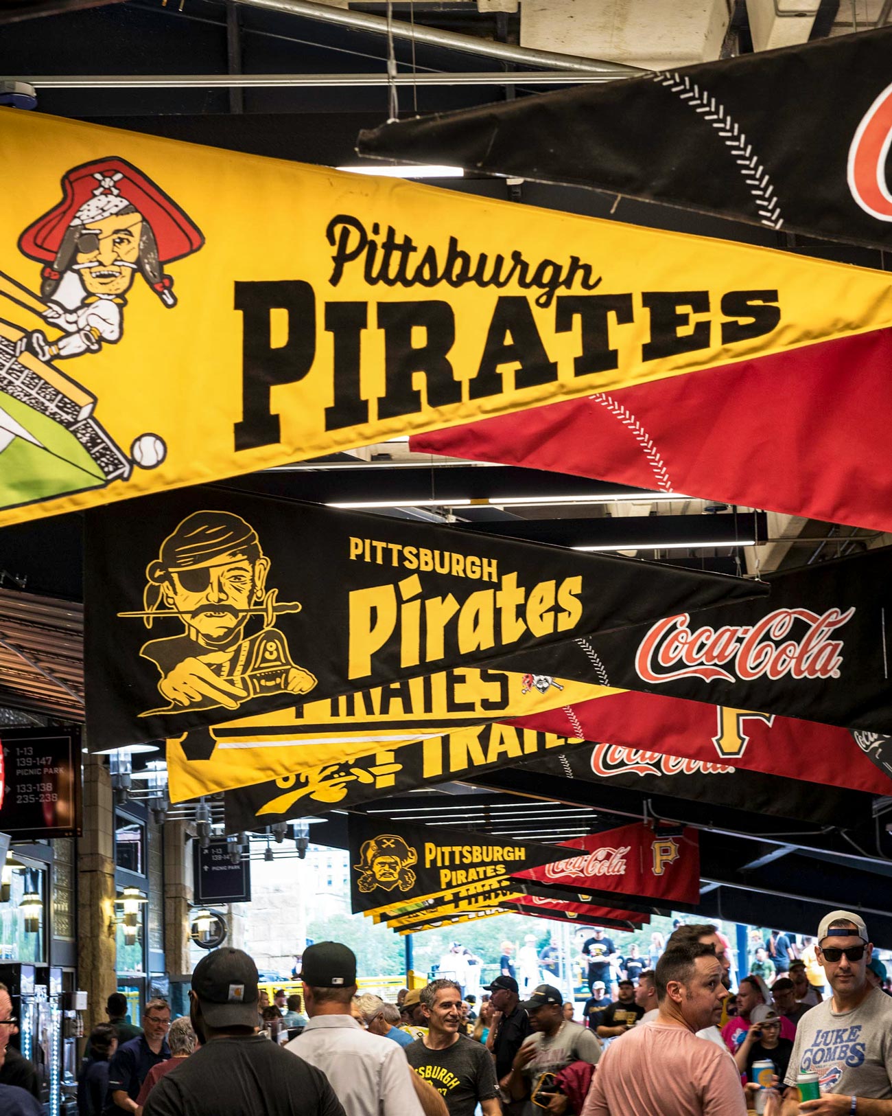 Overhead, YDI brought the Pirates’ past back to life with resurrected historic pennants, seamlessly blending advertisements in with these designs to create a subtle, integrated look that displays sponsorship without detracting from the overall feel of the space.