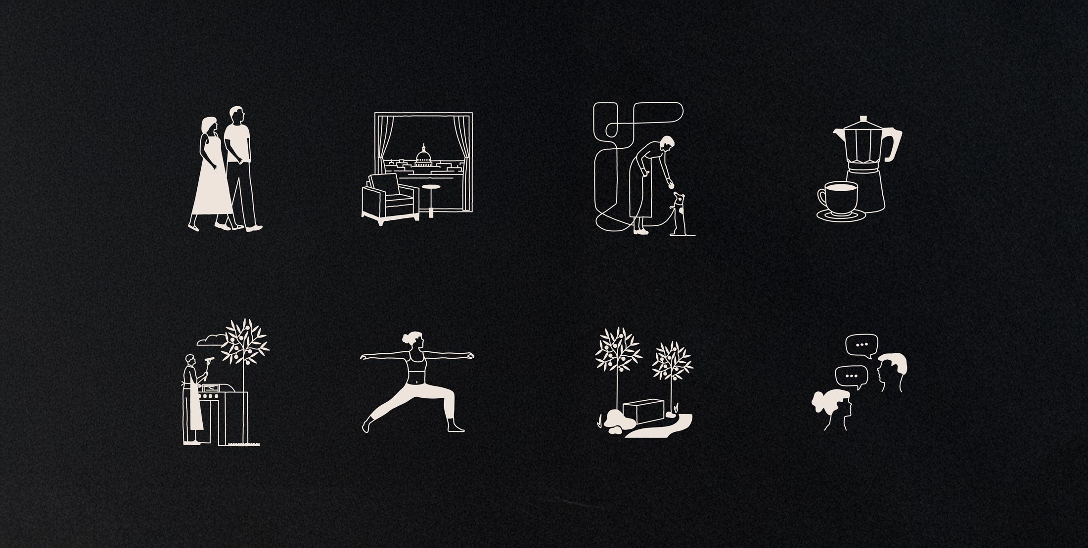 Simple ADA sign panels, constructed of premium materials, allow the playfulness of these expressive glyphs to take the main focus. YDI took inspiration from Everly’s brand illustrations and designed an extended family of glyphs for interior signage to fit its look and feel.